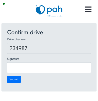 Currently, the drive signature is a part of the drive form, so it means that we can alter the drive details after verification. Of course, this means that the drive is unverified since the checksum also changes, but recently @magul pointed out that the drive could be verified after clicking the 'submit' button. Something like this: