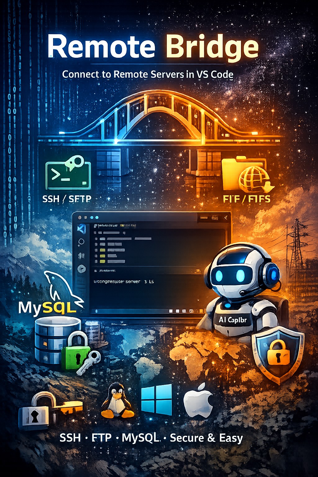 And so Remote Bridge was born — a fresh extension built from the ground up, with no legacy baggage, multi-protocol support, AI integration, and way too many shell command edge cases for three different operating systems.