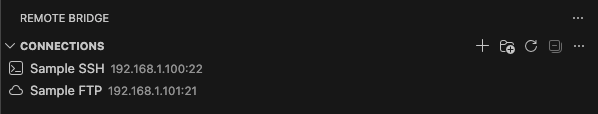 - Open the command palette → "Remote Bridge: Show Connections" to open the sidebar