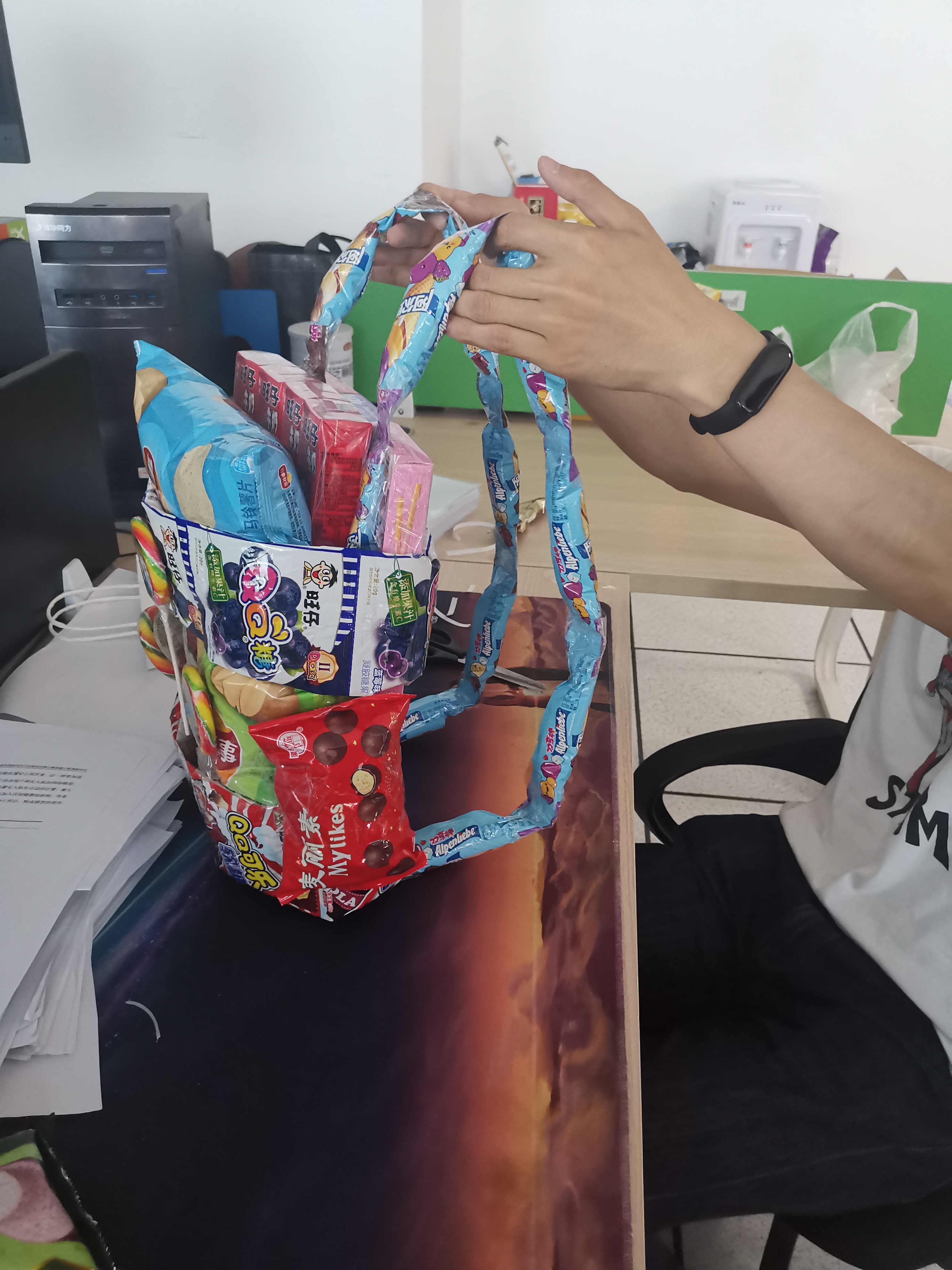 我没想到是以这样的方式开始,突然大家一起兴起,我就去买了很多零食。在众人的手机与目光的照耀下,我开始了零食书包的制作,众人绘声绘色一波强劲商业互夸,完成了我觉得非常酷炫的儿童节礼物。剩下只待她晚上出现,众人一起记录下这有趣的瞬间。但她晚上要整理论文材料,而且下午的时候我们才得知宝马dd的噩耗,众人皆不知如何是好,只得看他阴沉度日。一时间,我们都想起了两年前的事件,都是如此惊人地相似,难道这就是我们所不得不背负的达摩克里斯之剑?只消等待它落下的方位与时机。晚上,雨夜,很大,她很困估计且兴致不高,不过我一定要前来,我知道她一定会很喜欢。背着包第一次坐在里面的沙发上,我还是先跟她说了此次比较悲伤的事件,以及下午看到的女生呆坐于雨中的泪目情景,这个儿童节我看到的更多是悲伤。然后我故作神秘地从书包里面掏出了“书包”,她那个欢喜程度一下冲消了我们当前两人悲伤的氛围,抱着爱不释手,非要拍照,我说本来是下午等你来给个惊喜的,不过现在也挺不错的。这就是儿童节的故事了,真实且悠长。