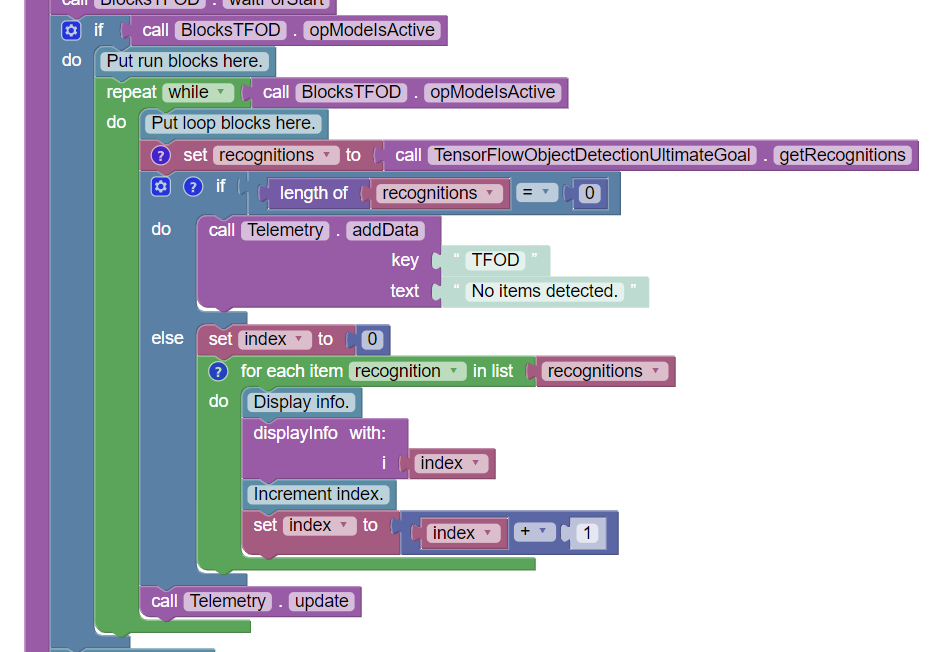 The op mode gets a list of recognized objects with each iteration of the while loop.