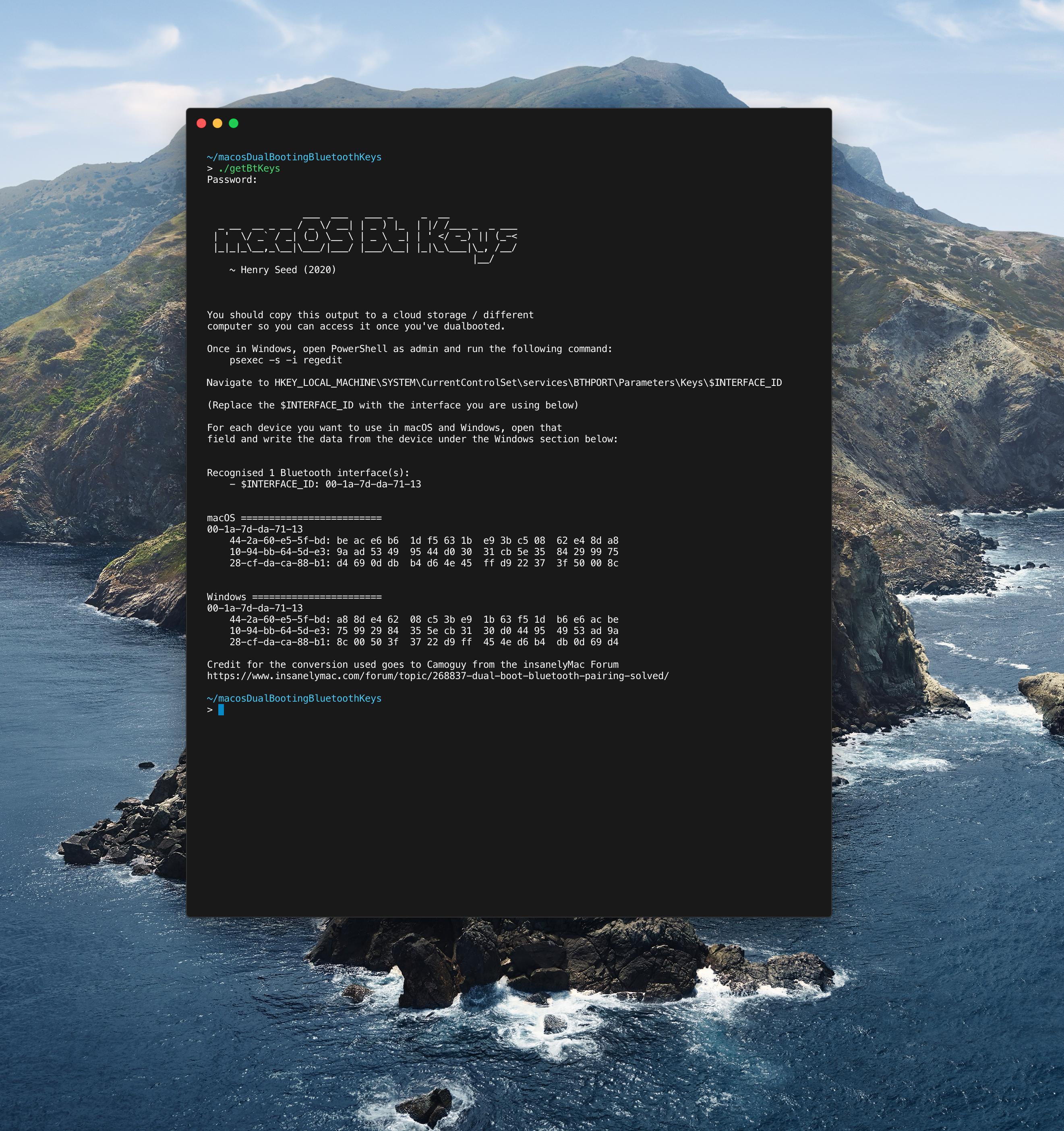 It grabs the keys from com.apple.Bluetoothd.plist and converts them into big endian for windows regestry.