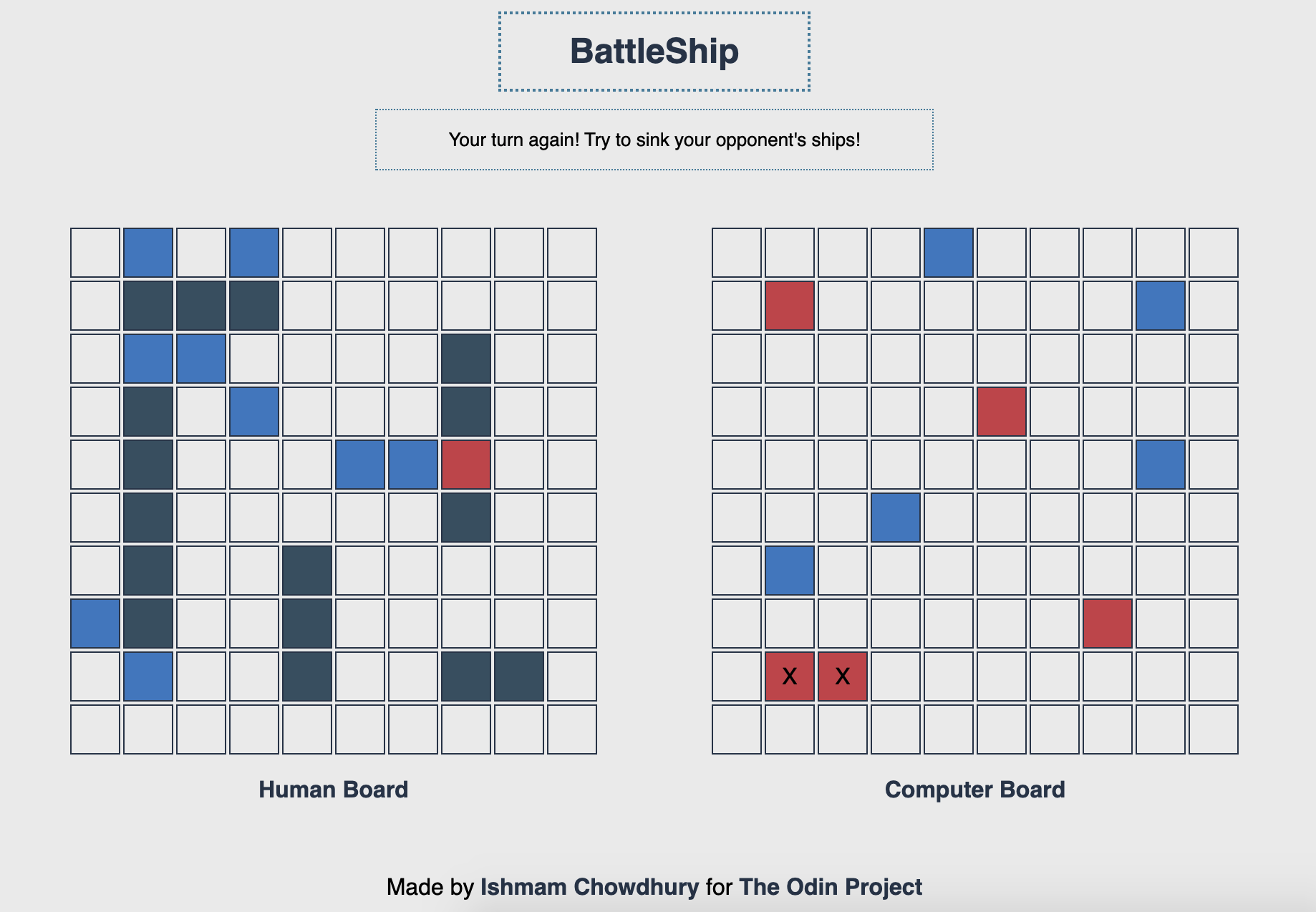 The BattleShip App was completed as part of The Odin Project and it has been expanded on the initial requirements provided.