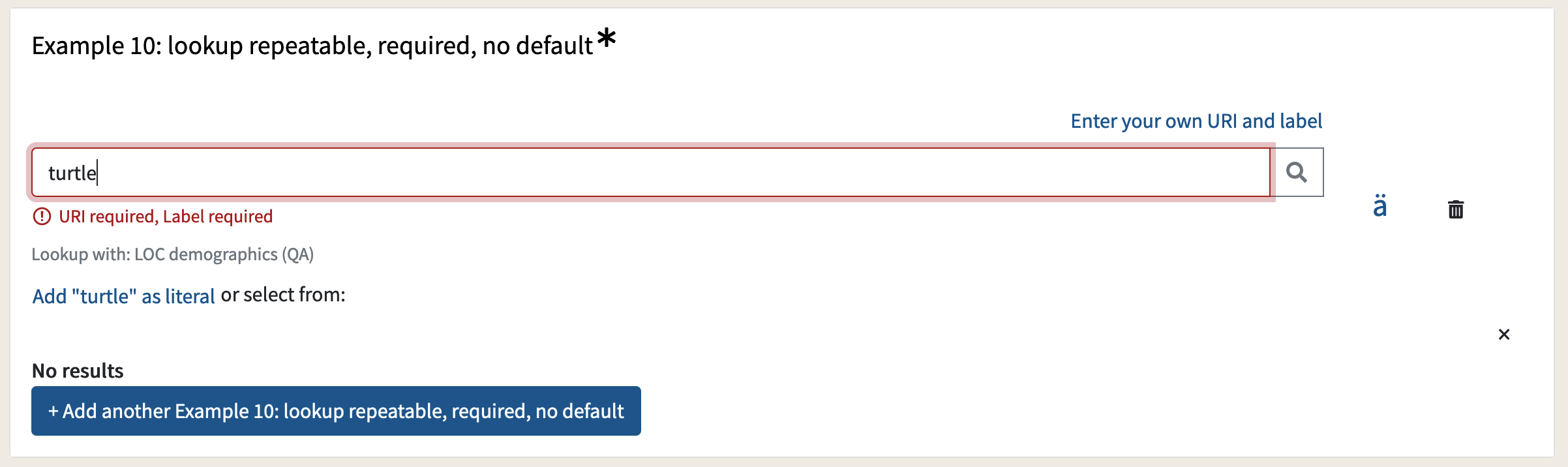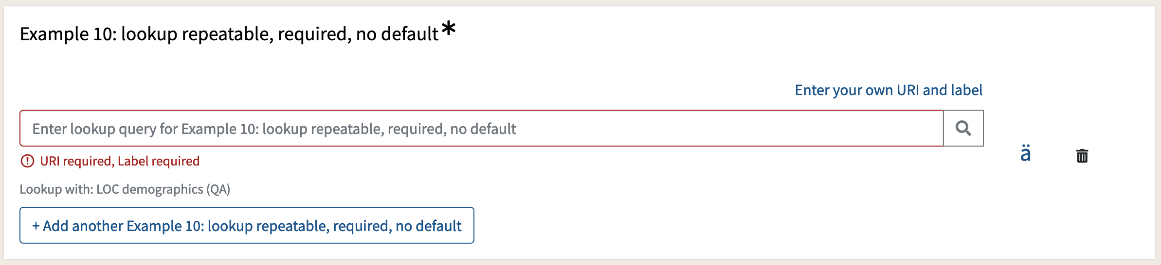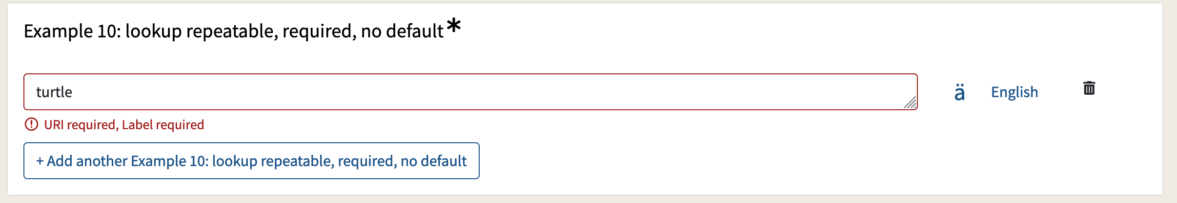 If you create a new resource using "Sinopia:RT:Demo:SampleResourceFuller" on development (or any template that has a required lookup), then before entering any values you click save. This validates the form. Next fill in all required fields except the required lookup ("Example 10" in this case).