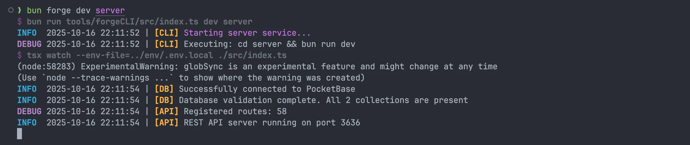 bun run forge dev db. - Start the API Server: