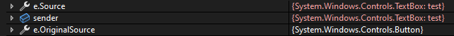 ContentControl.ContentTemplatefor some reason thee.Sourcechanges from the expected ComboBox/TextBox etc. to the button itself. Thesenderremains to be ComboBox/TextBox.Traced it back to:
