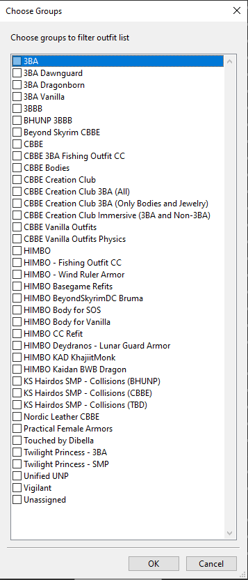 Step 3: In the popup box, look for the armor you want to build, in our case there is no group for our armor, so we will tick the box next to Unassigned at the bottom.
