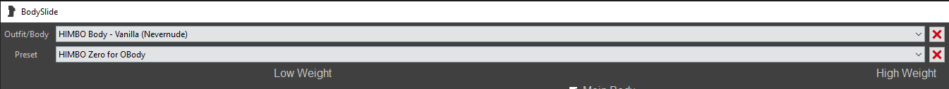 Step 1: In the Outfit/Body dropdown, find and select HIMBO Body - SOS OR HIMBO Body - Vanilla (Nevernude). In the Preset dropdown, find and select HIMBO Zero for OBody.