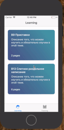 Теперь на экранах обучения и тренировки списки в виде карточек, как было в макете.