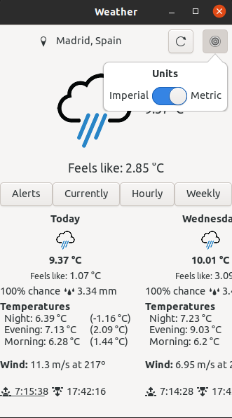 A simple GTK weather app to play with Linux Mobile development in GTK4 and OpenWeather API.