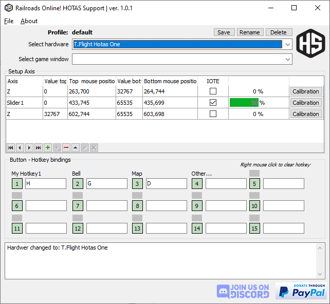 - STEP 2: position your mouse to the throttle min and position your HOTAS for neutral. Hit Joytick 1 button. It will save the position and Hotas value to the "BOTTOM" fields