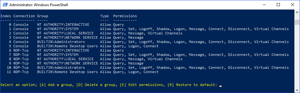 A PowerShell script to view and edit Remote Desktop permissions.