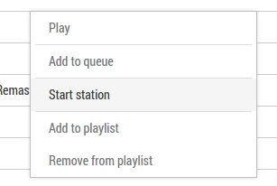 An other way to start a new station is by right clicking on a track, artist, album or playlist. This will reveal a context menu which has the option 'Start Radio'.