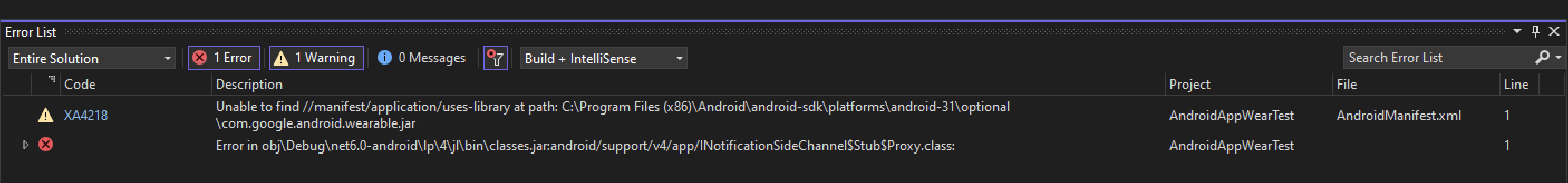 error JAVA0000: Error in obj/Debug/net7.0-android/lp/59/jl/classes.jar:android/support/v4/app/INotificationSideChannel$Stub.class: