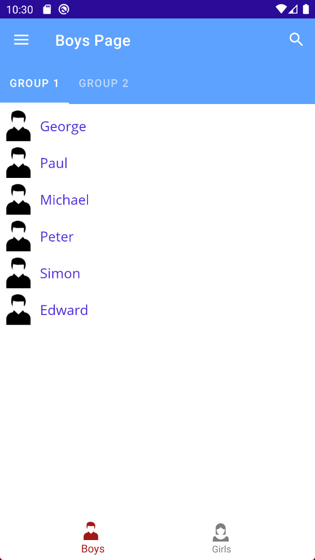 My application has 2 main tabs (bottom tabs) and each main tab has two categories (top Tabs)