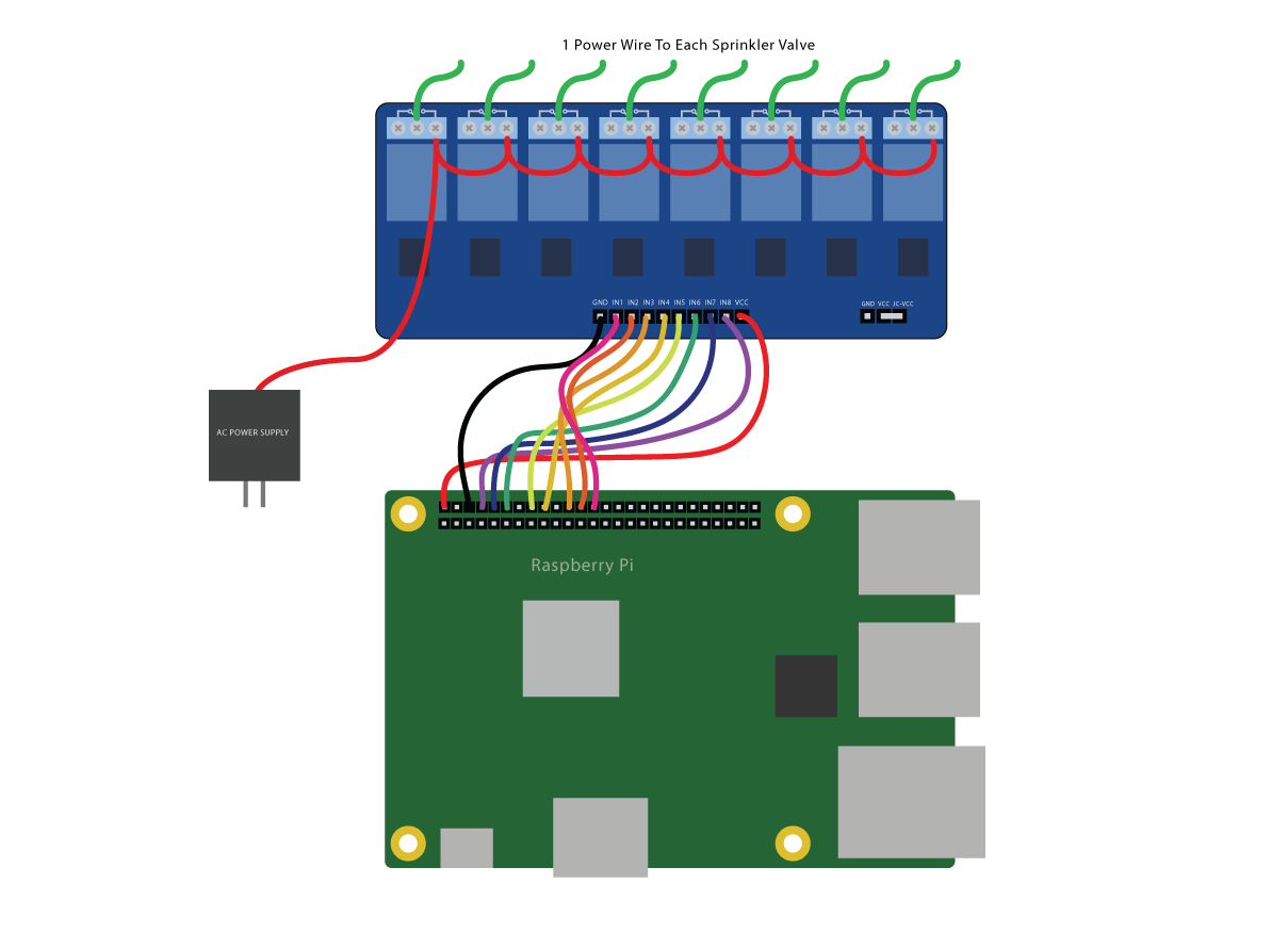 Drizzle is a Nerves-based home sprinkler system. It is designed to support up to 8 zones, and will automatically adjust watering times given local weather data. By default, the watering times will increase gradually as the temperature reaches a predetermined threshold (90ºF) and will decrease gradually based on recent and upcoming precipitation. The system will also shut down when the temperature drops below a predetermined threshold (40ºF). You also have the option to set "Winter months", which are months where the system will not run regardless of temperature.
