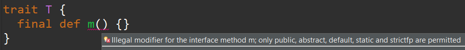 Consider the following: ```groovy trait T { final def m() { 'T' } } class C implements T { } print new C().m() ``` Should print "T" when compiled and executed.