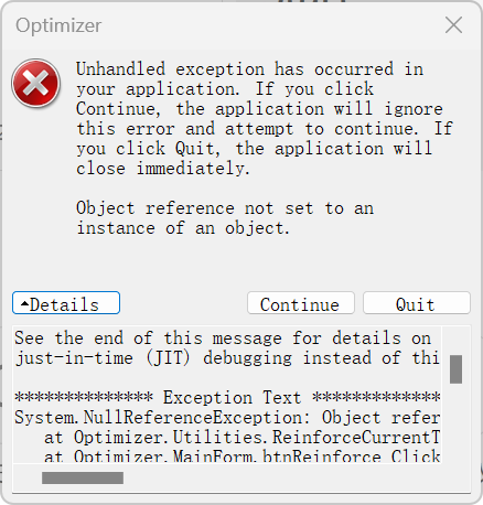 The program pops up an error when clicking 'Reinforce policies'