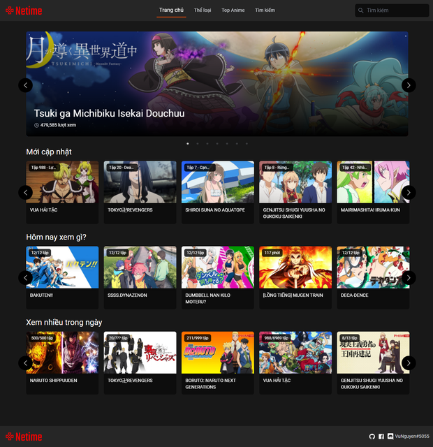 Netime is a website to watch anime with vietnamese subtitle, built with React and Tailwind.