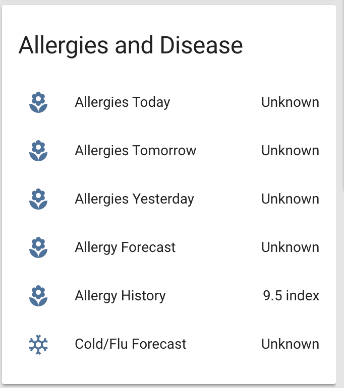 As of 0.67.0, a number of the Pollen sensors show "Unknown":