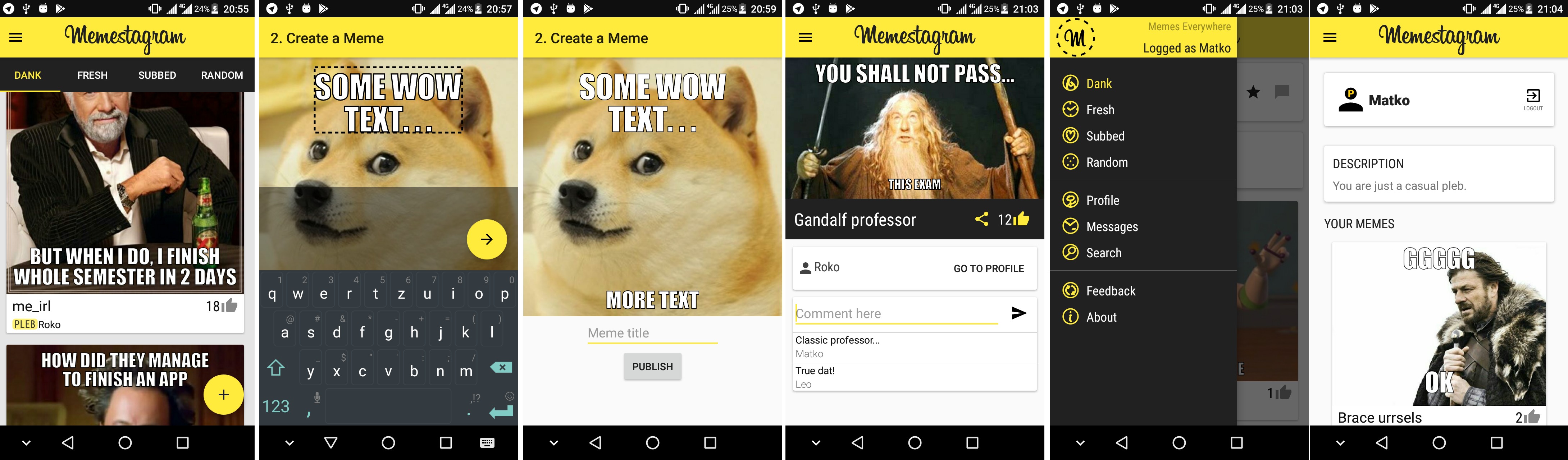 - custom view for meme generation (type caption, swipe to scale, drag to move)