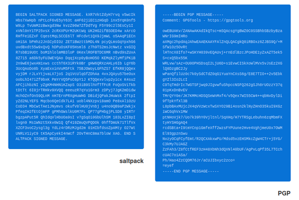 Here's a comparison of PGP and saltpack output: