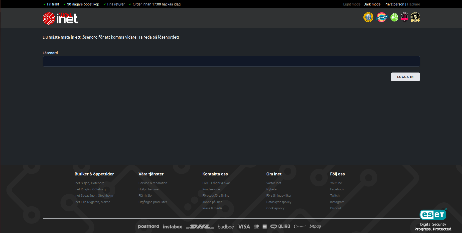 När vi först går in på sidan möts vi av ett autentiseringsformulär, som kräver lösenord för att ge oss flaggan.