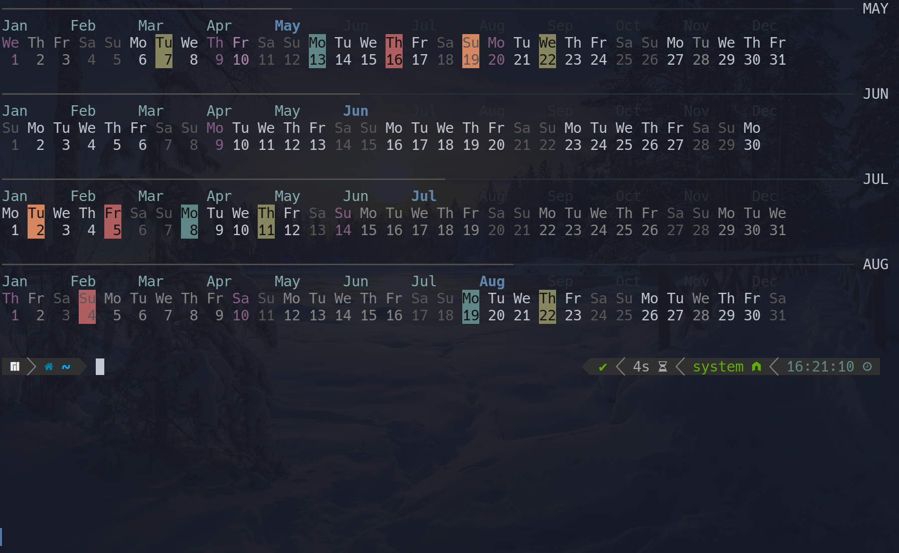 -m, --month [yyyy/mm] Show monthly calendar