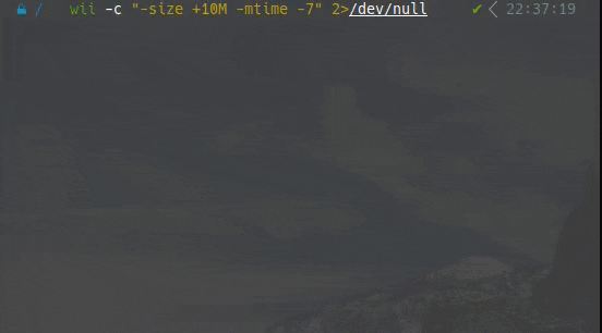 $ wii -c "-type f -mtime -7 -size +2M -name '*log*'"
