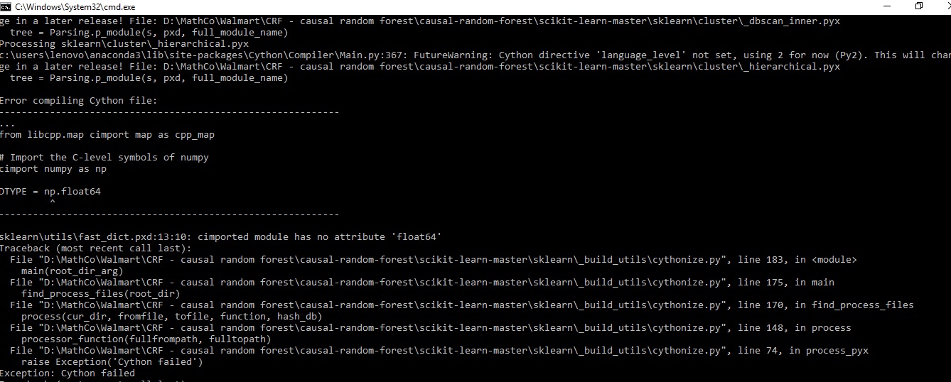 P.S - i have tried it with all specified, upgraded and downgraded versions of - python, numpy,scipy and cython.
