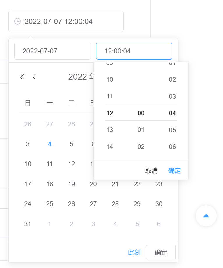 Support the selection of hours, minutes and seconds Just like elementUI DateTimePicker.
