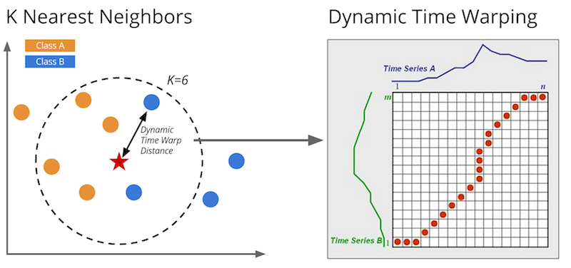 I began researching the domain of time series classification and was intrigued by a recommended technique called K Nearest Neighbors and Dynamic Time Warping. A meta analysis completed by Mitsa (2010) suggests that when it comes to timeseries classification, 1 Nearest Neighbor (K=1) and Dynamic Timewarping is very difficult to beat [1].