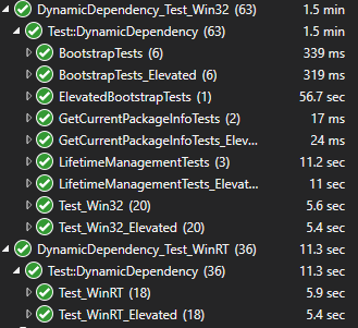 Expands test suite to run all tests elevated. Verified expanded test suite passes.
