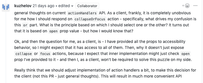 conditionprop intreeItemBehavior... receiveFocus: { keyCombinations: [{ keyCode: keyboardKey.ArrowLeft }], condition: doesEventComesFromChildItem, }, collapse: { keyCombinations: [{ keyCode: keyboardKey.ArrowLeft }], condition: (event, props: TreeItemBehaviorProps) => !doesEventComesFromChildItem(event, props) && props.open, }, ...And then in