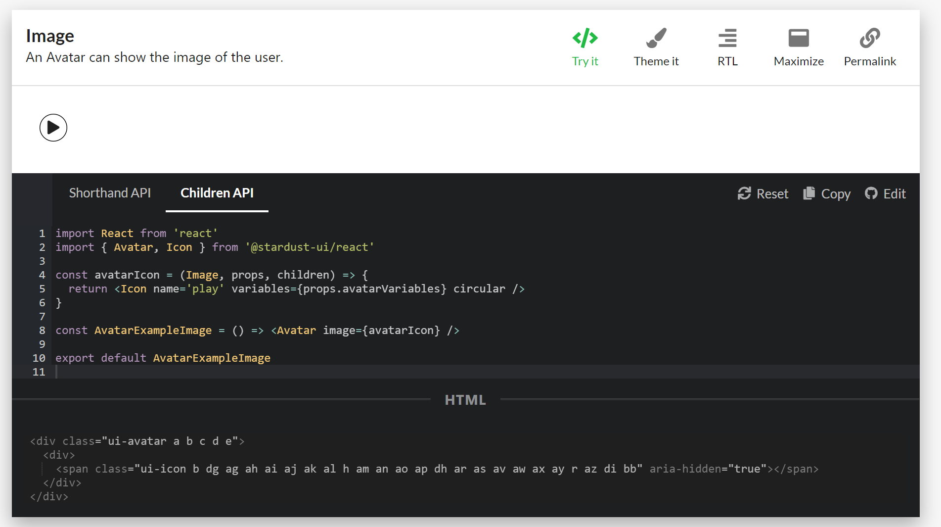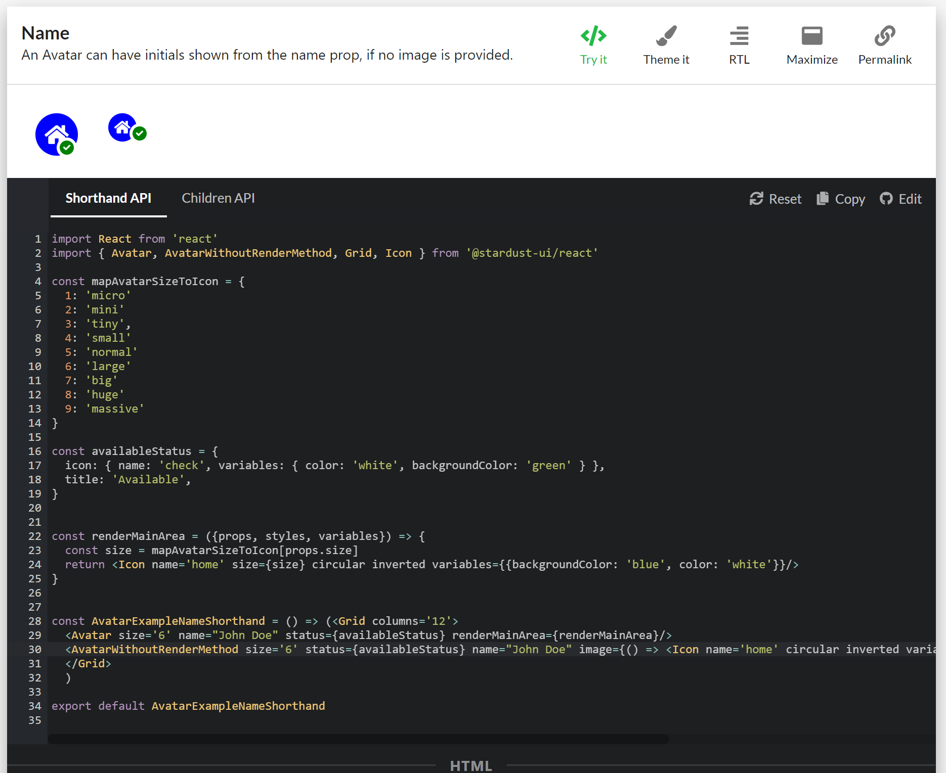 This component is improvement of the existing Avatar component that introduces shorthands for the image and label components which were previously hard-coded inside the Avatar component.