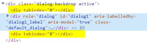 aria-hidden: trueis violating a rule. Having noaria-hiddenis better in this case.I noticed the implementation of trapping focus in a W3 aria examples, they didn't require any