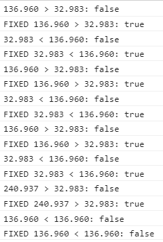 I checked the solution locally using npm run codepen to be able to run the provided example and agree that the problem is that they are string comparisons, as well as parseFloat fixing the issue:
