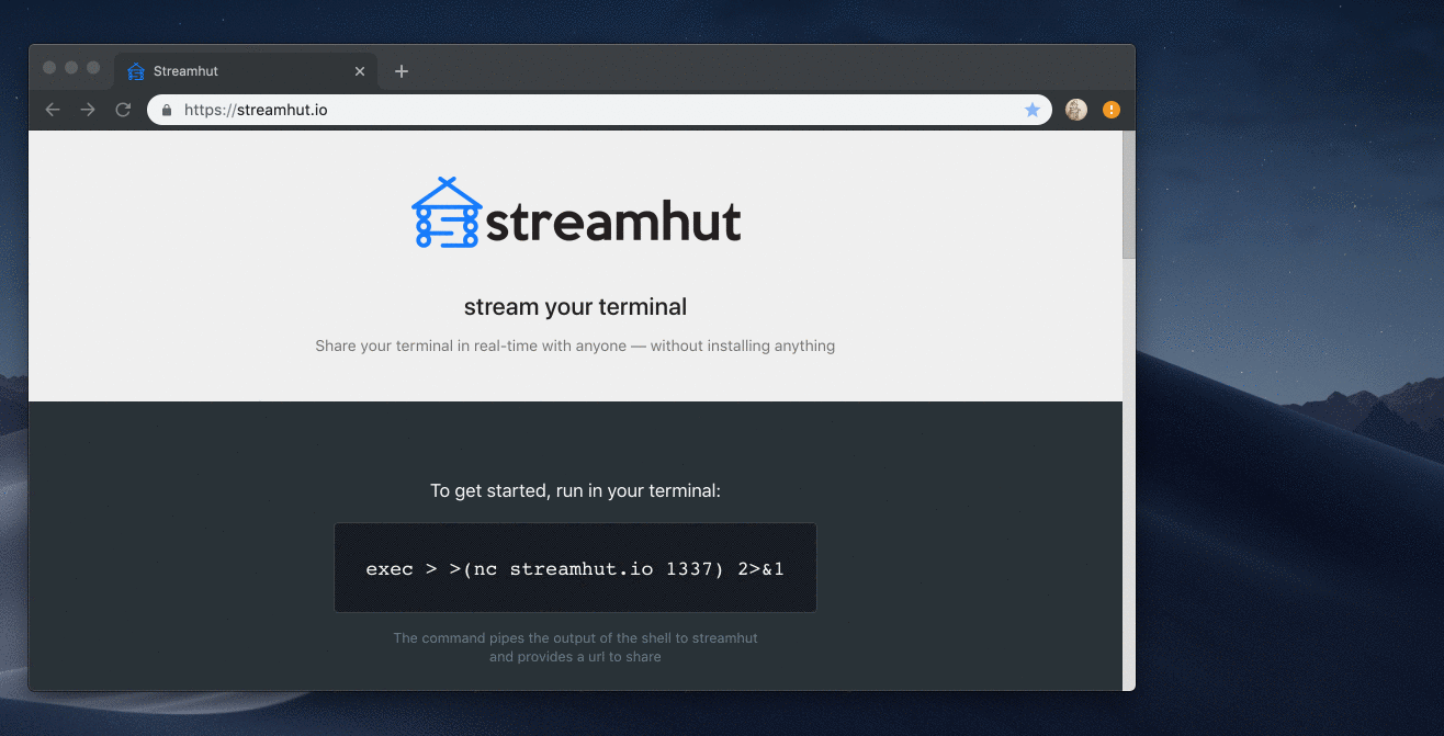 One liner to stream your terminal: