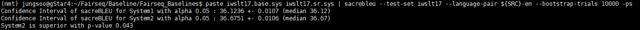 I referenced the code from '''https://github.com/mjpost/sacrebleu/pull/11/files''' and '''https://github.com/neubig/util-scripts/blob/master/paired-bootstrap.py'''.
