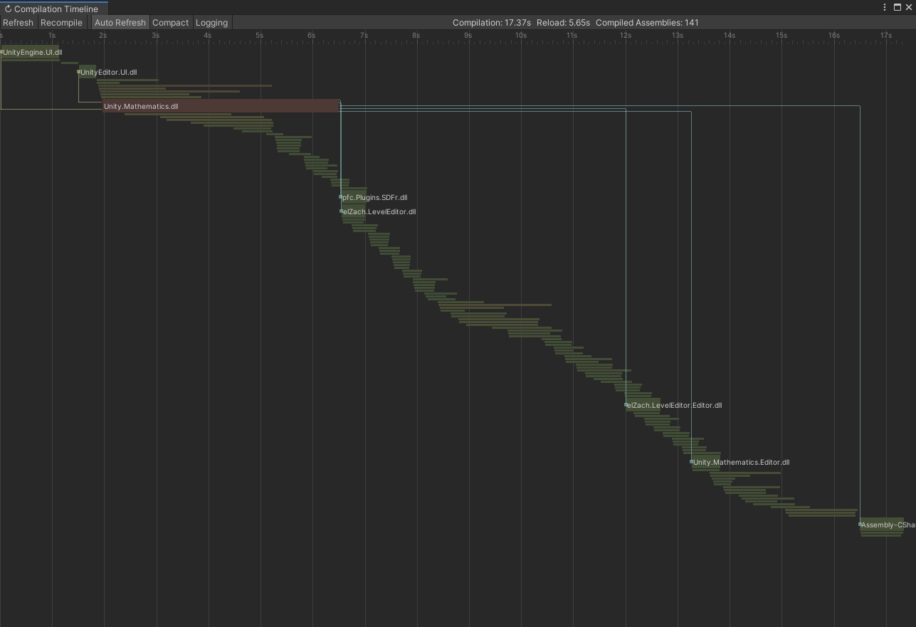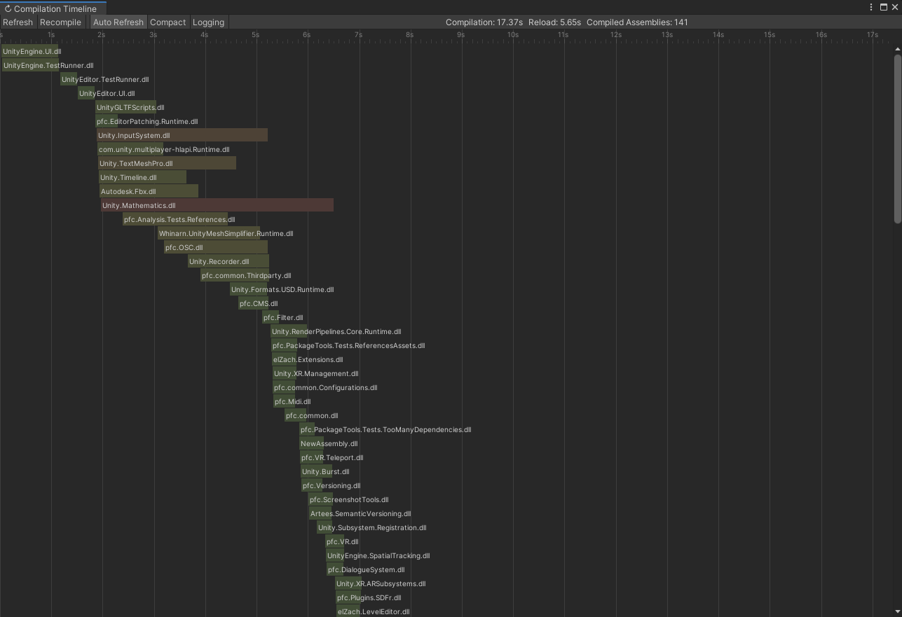 This tool visualizes the assembly compilation process in Unity3D. It hooks into the Editor-provided events and nicely draws them on a timeline. That's especially helpful when trying to optimize compile times and dependencies between assemblies.