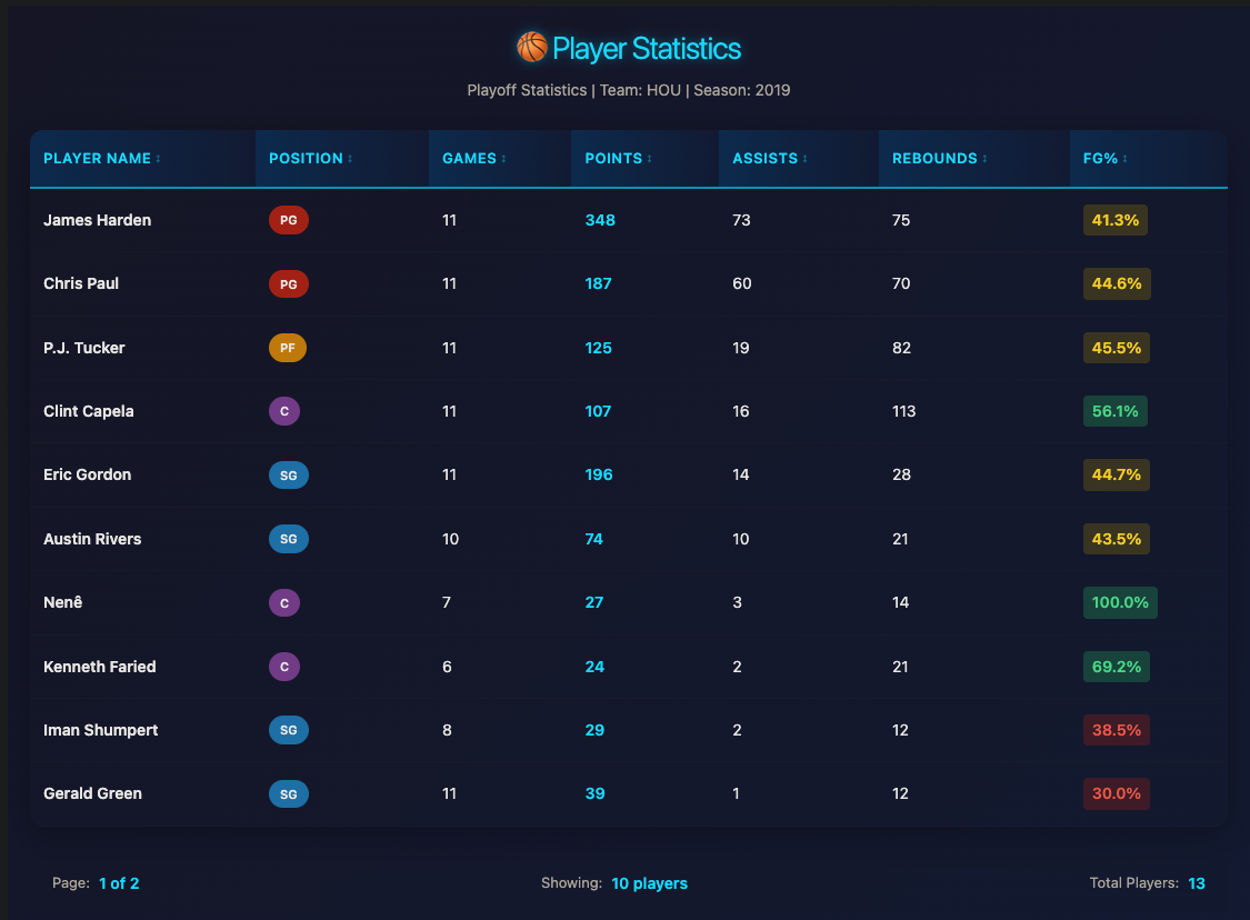 This API provides endpoints to query NBA player statistics, including both "Totals" data, "Advanced" statistical data, and Player Shot Chart data. Each endpoint supports filtering, sorting, and pagination options to help you retrieve exactly the data you need.