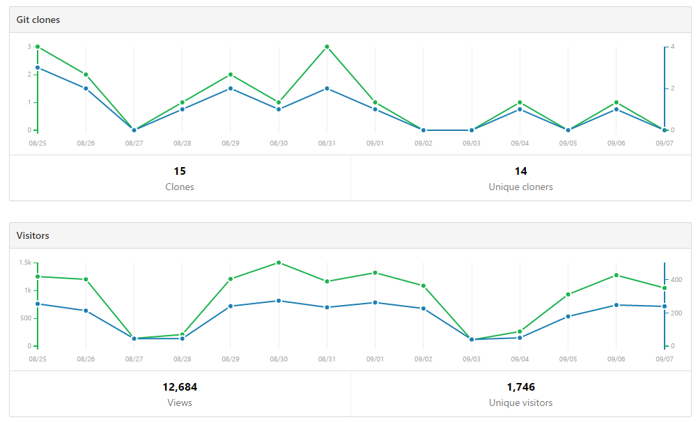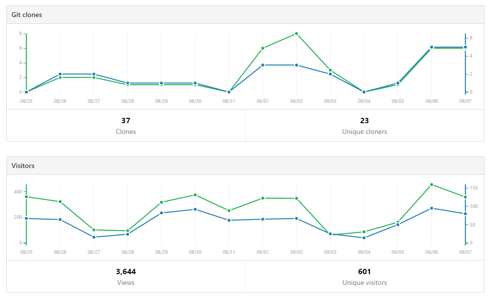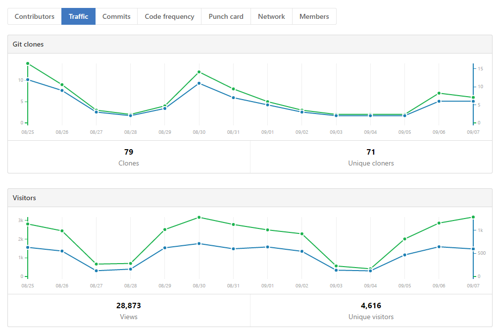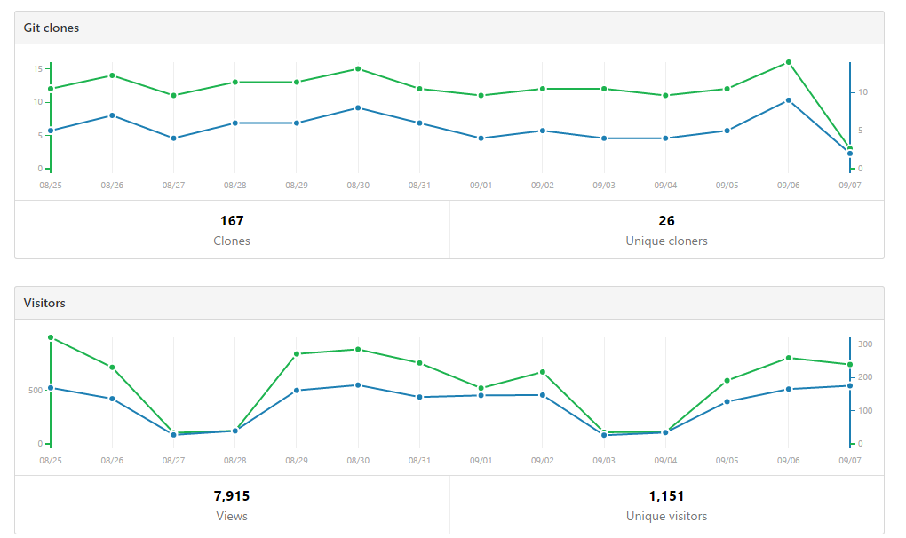 Here's traffic statistics from the PnP, PnP PowerShell, PnP Sites Core (.NET) and JavaScript Core component repository.