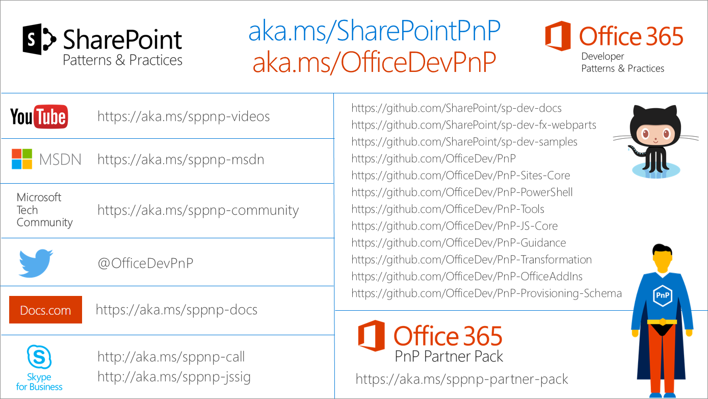 Here’s the list of active contributors (in alphabetical order) during past month in PnP repositories. PnP is really about building tooling together with the community for the community, so your contributions are highly valued cross the Office 365 customers, partners and obviously also at Microsoft.