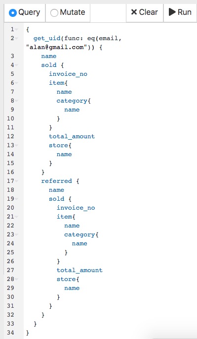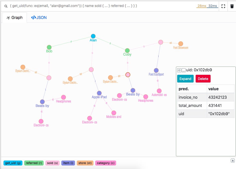 Query and Result in Ratel(Dgraph):
