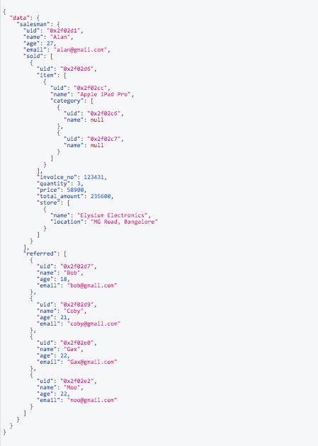 Now, load the schema and sample data into Dgraph using the API end point created for the same.
