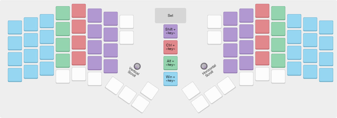 I'll start with the meaning of SET keycode and to understand this we have to look at (A,S,D,F) keys in which I added tap-hold functionality accordingly when held (Win, Alt, Ctrl, Shift), and this gives ability to press almost any combination without issue and exceptions are for example (Shift+F, Shift+G, Ctrl+D, Ctrl+C,). SET key comes to solve this problem by adding layer on it and functionality of this you can see in image