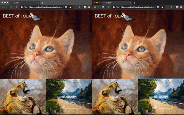JOY allows you to build fully realized, progressive applications with offline first functionality with an almost magical noBackend experience, all using client-side Javascript!