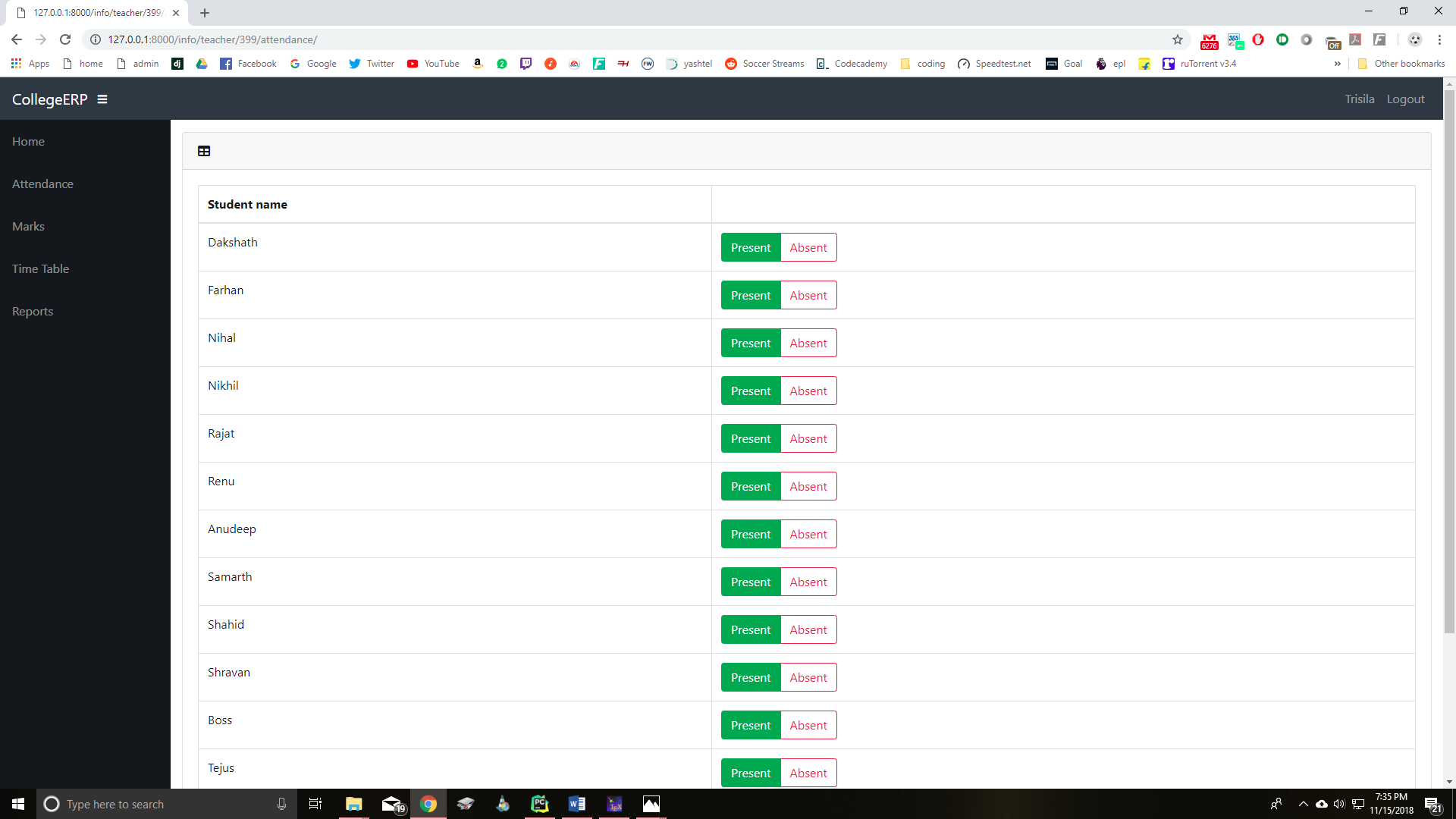 This is present in Django Admin -> Attendance (http://127.0.0.1:8000/admin/info/attendanceclass/).