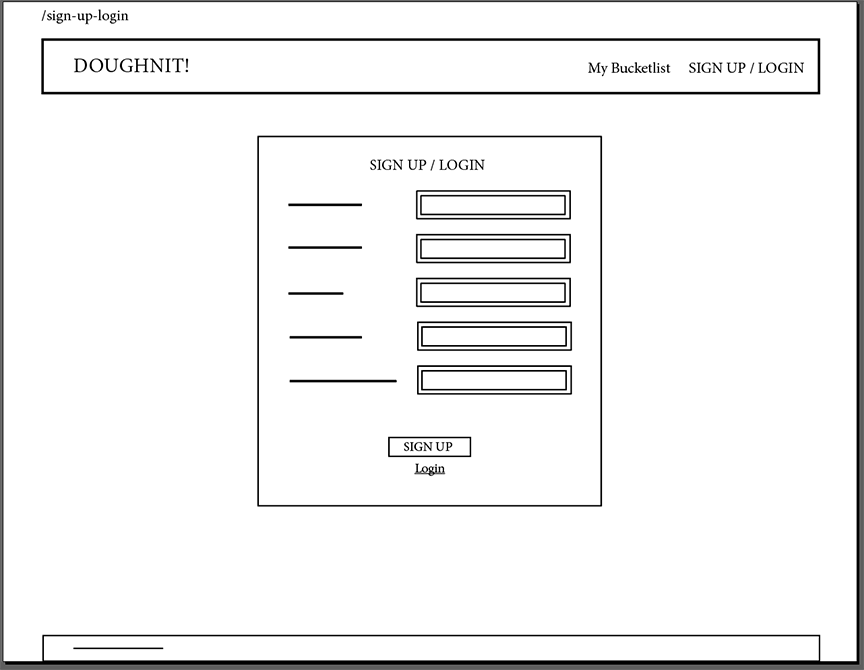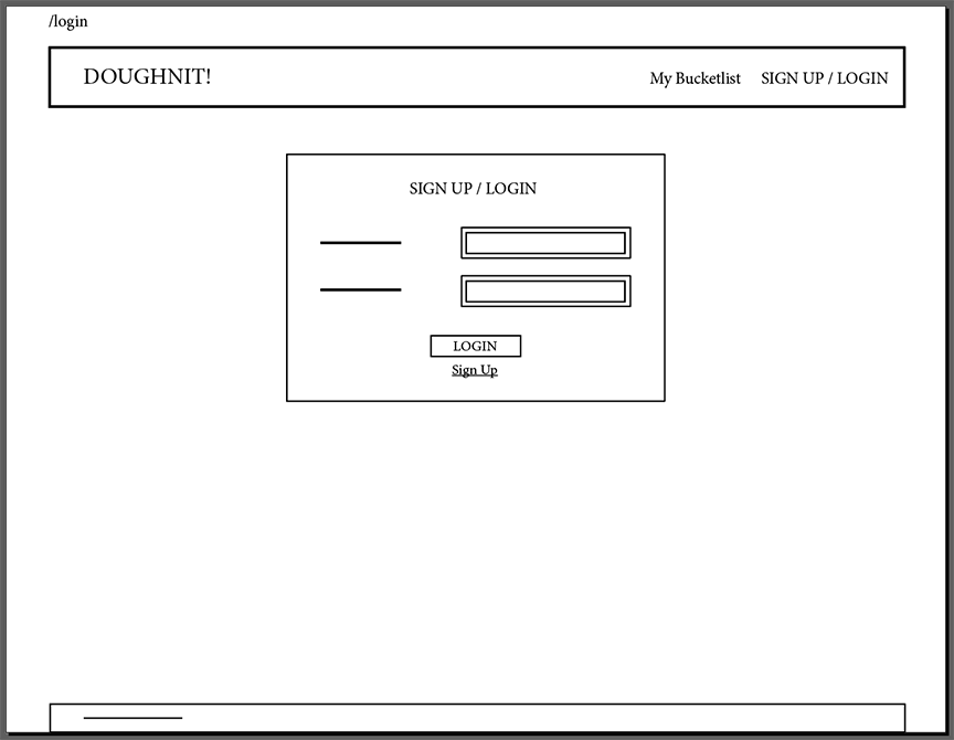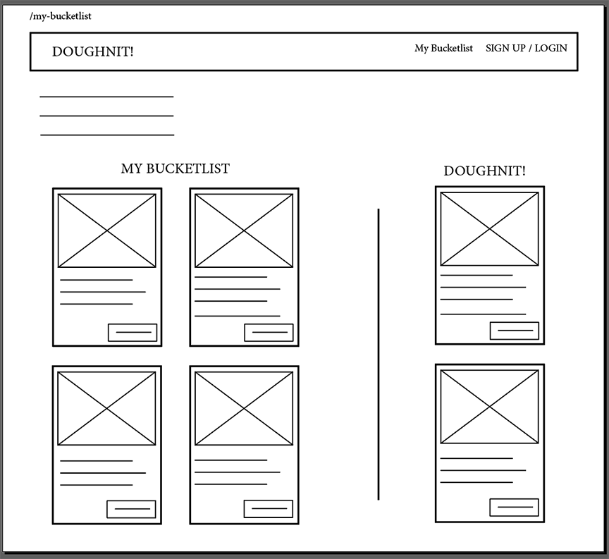 - Load a new page with two columns: "Username's Bucketlist:" and "Been there, DOUGHN that!"