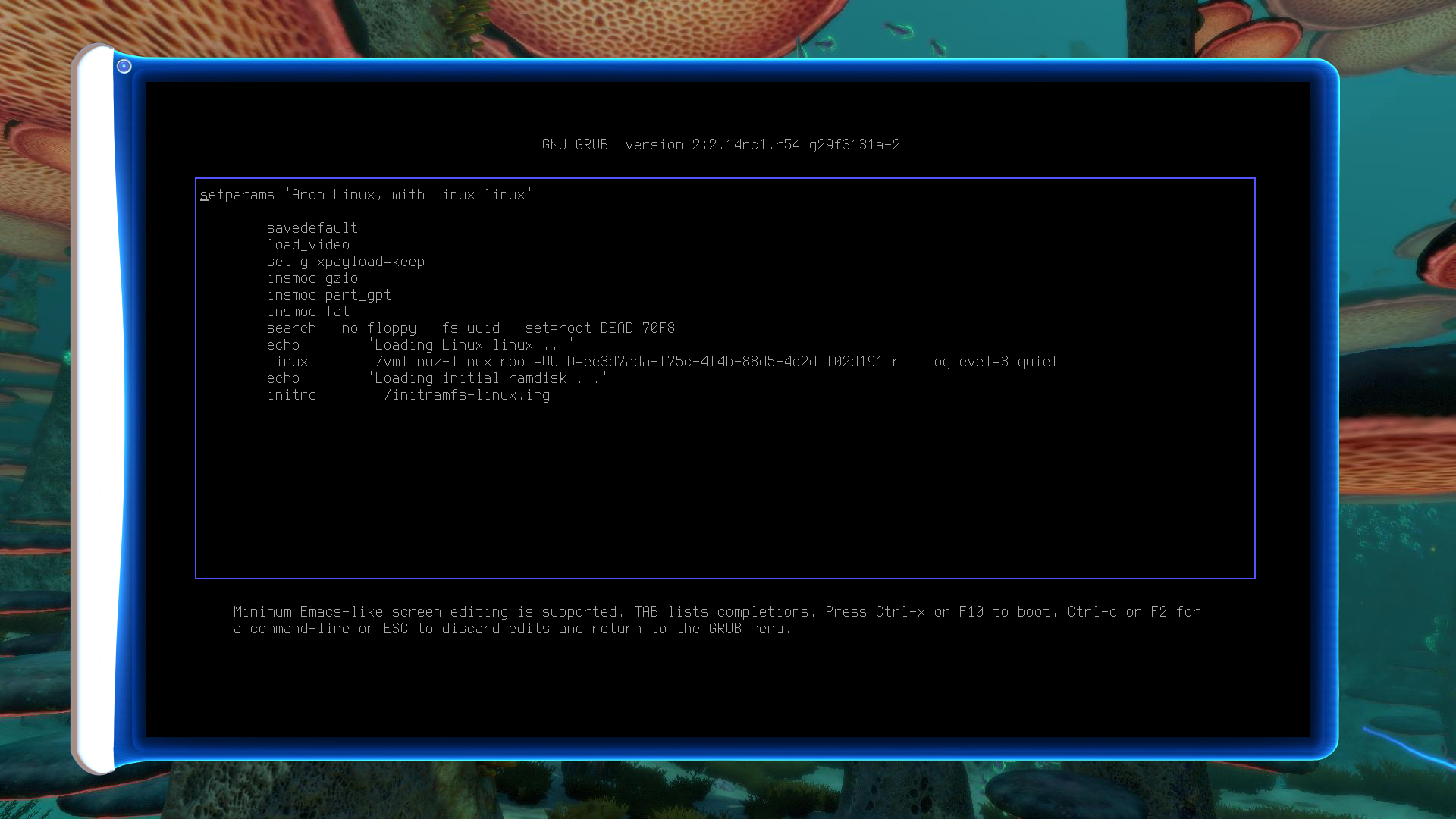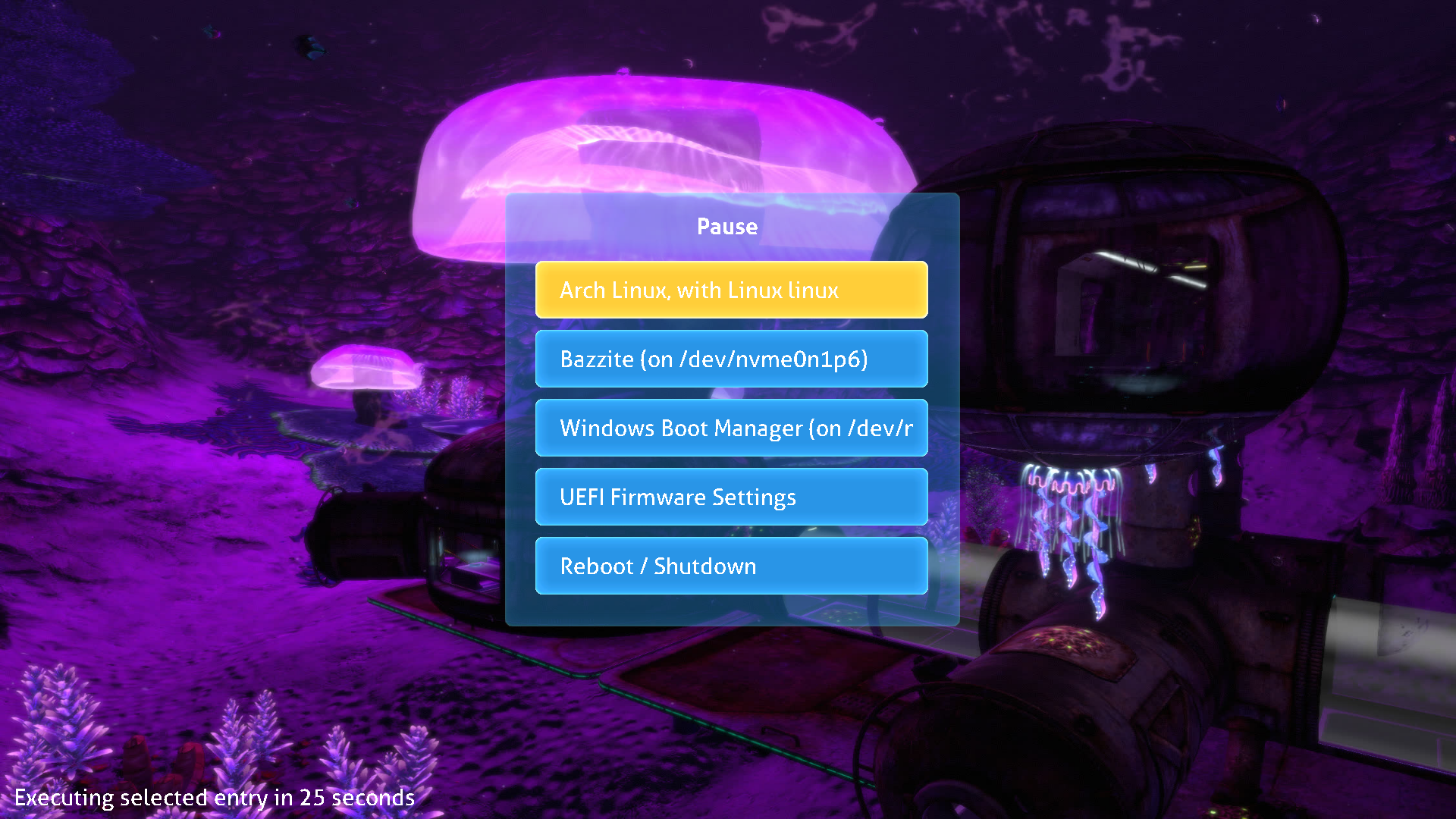 Subnautica themed GRUB2 theme.